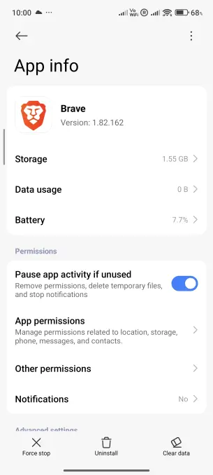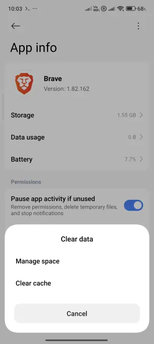 Problem statement: How to clear the cache in the Brave browser on Android.